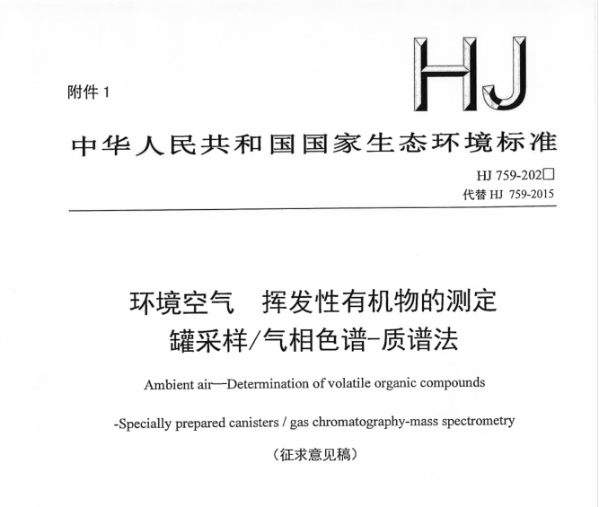 《環(huán)境空氣 揮發(fā)性有機物的測定 罐采樣/氣相色譜-質(zhì)譜法》迎